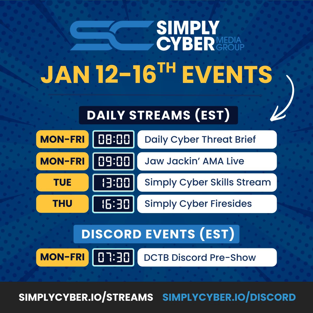 Find more about what’s happening this week in the Simply Cyber community, below. Join us on the Daily Cyber Threat Brief happening every weekday morning at 8 AM Eastern on YouTube and LinkedIn.