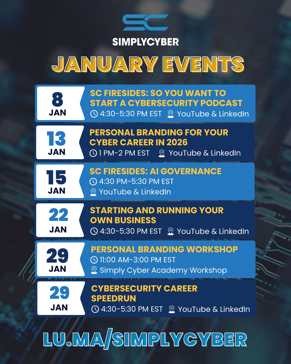 Register to attend now and meet us on Simply Cyber this Thursday: https://luma.com/liu0cgas