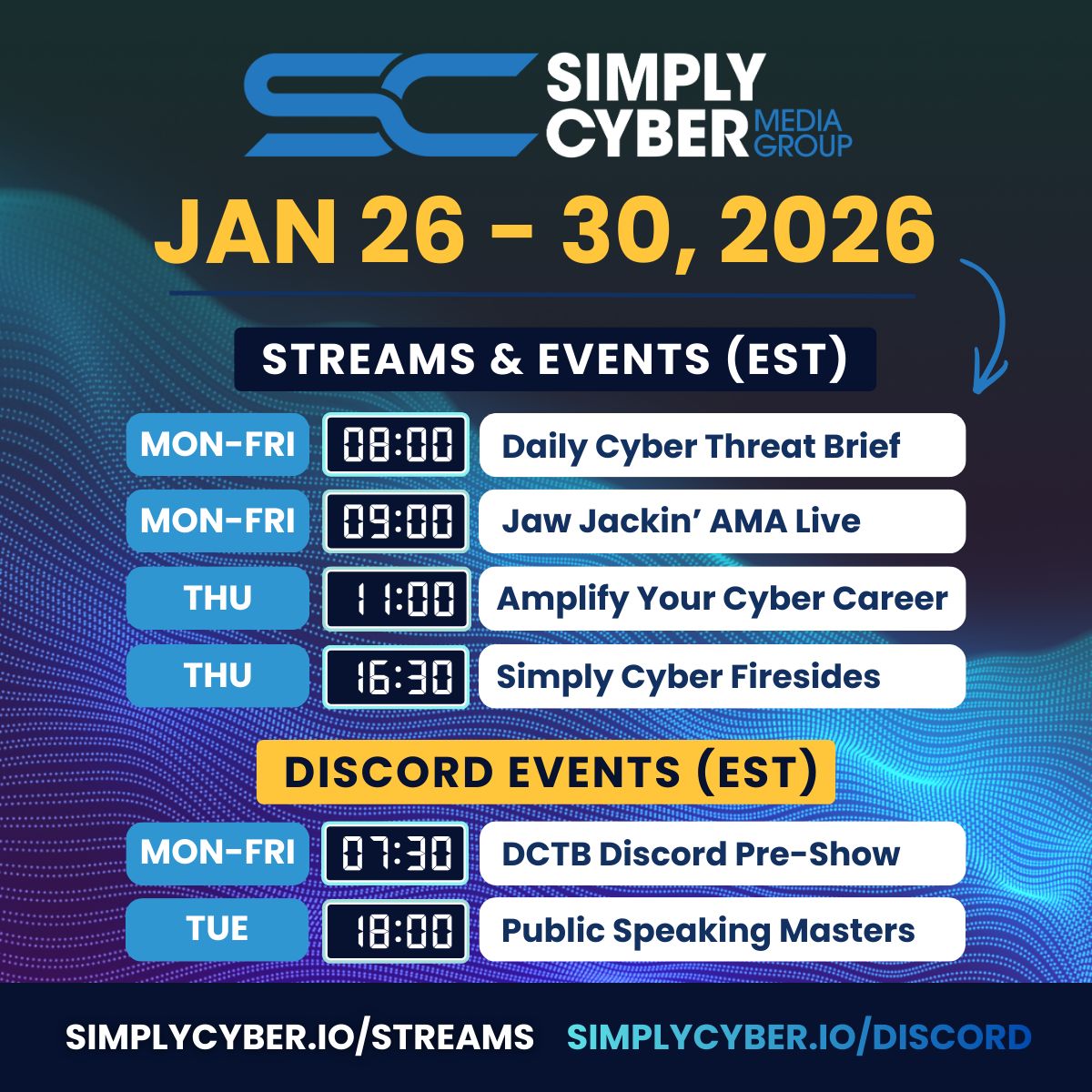 Find more about what’s happening this week in the Simply Cyber community, below. Join us on the Daily Cyber Threat Brief happening every weekday morning at 8 AM Eastern on YouTube and LinkedIn.