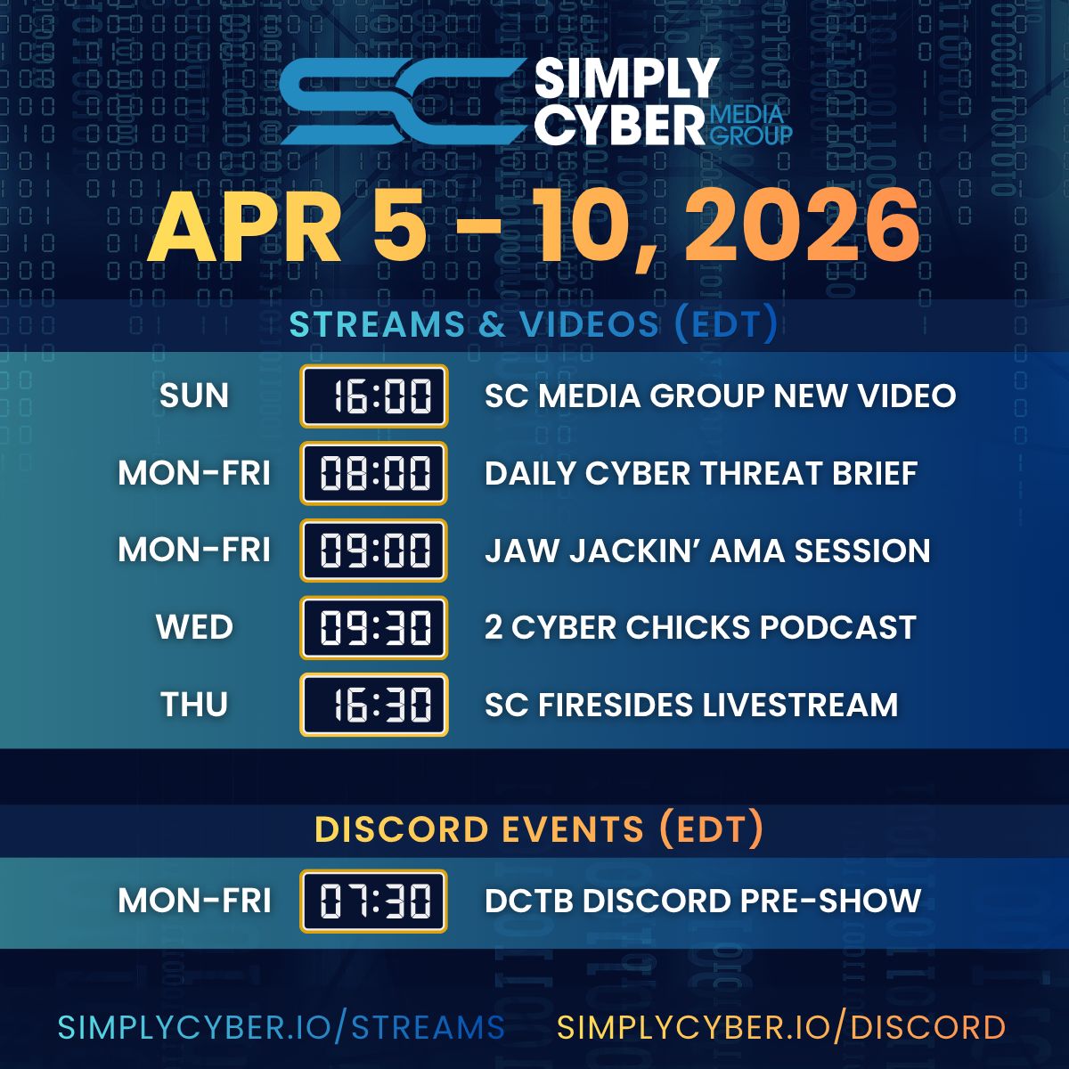 Find more about what’s happening this week in the Simply Cyber community, below. Join us on the Daily Cyber Threat Brief happening every weekday morning at 8 AM Eastern on YouTube and LinkedIn.