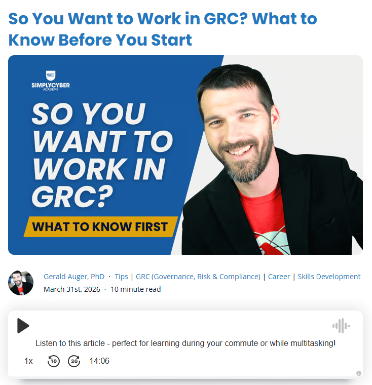 At Simply Cyber Academy, we specialize in making GRC and Cybersecurity Careers a reality. Empower your career by learning real in-demand skills from cyber experts and the theory behind those skills with Simply Cyber Academy.